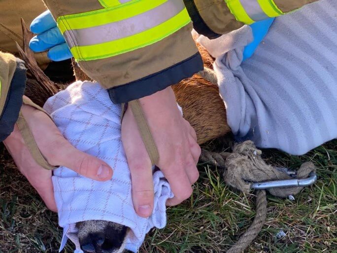 Ofwel wordt de ree met een bootje langzaam naar de kant begeleid. Ofwel zwemmen twee duikers naar het dier in nood. Eenmaal uit het water getrokken – aan de stangen van het gewei – wordt het arme beest al dan niet nog even bijgehouden. ‘Als het onderkoeld raakte, wordt het verwarmd met een dekentje’, vertelt Haesendonckx. ‘Maar eenmaal bijgekomen krijgt het de vrijheid en spurt het meestal naar de dekking. En neen – EHBO wordt niet toegepast.’ Een interventie bij een nog levend dier kan makkelijk twee uur in beslag nemen.