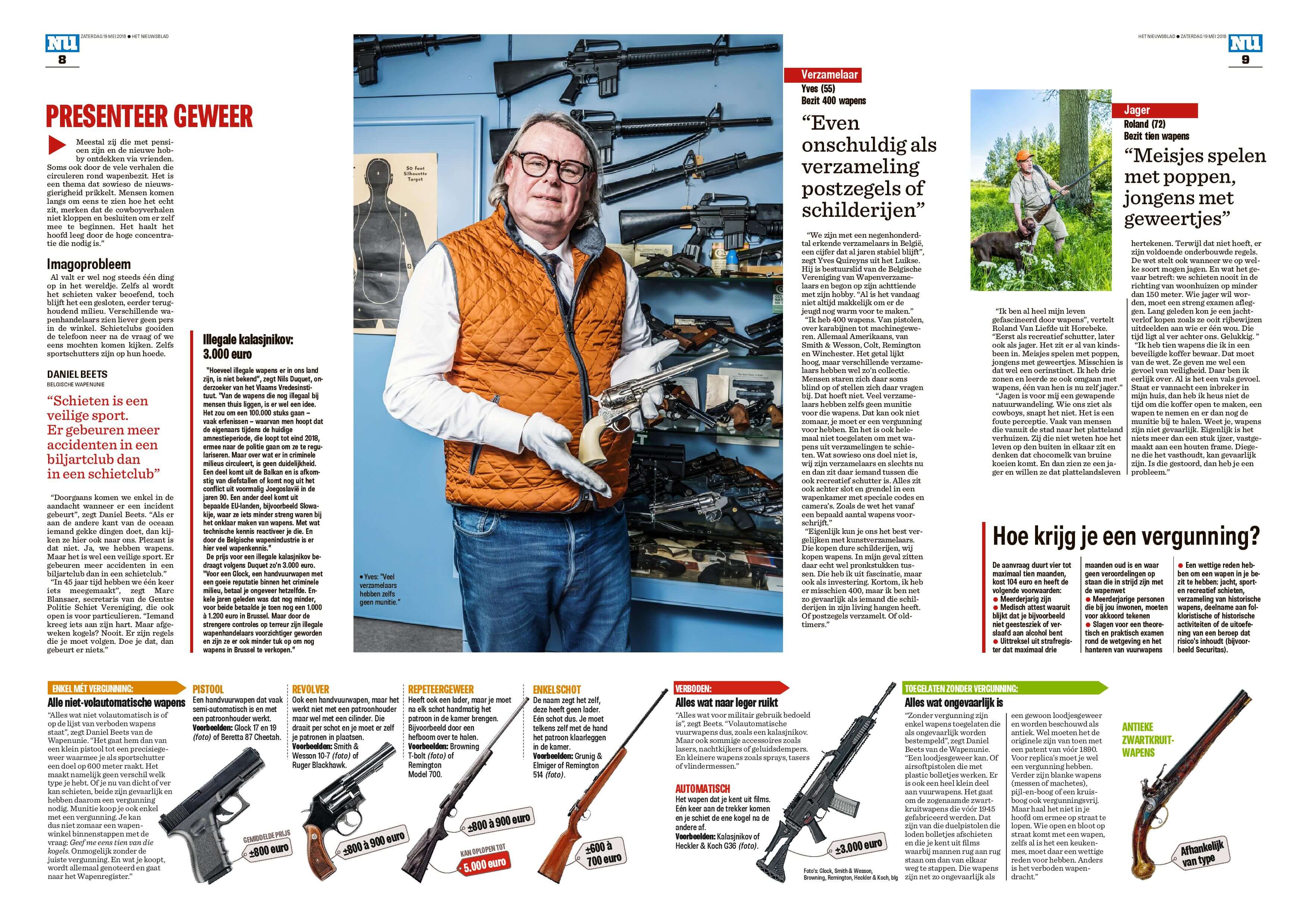 “Ik heb tien wapens die ik in een beveiligde koffer bewaar. Dat moet   van de wet. Ze geven me wel een gevoel van veiligheid. Daar ben ik eerlijk over.
