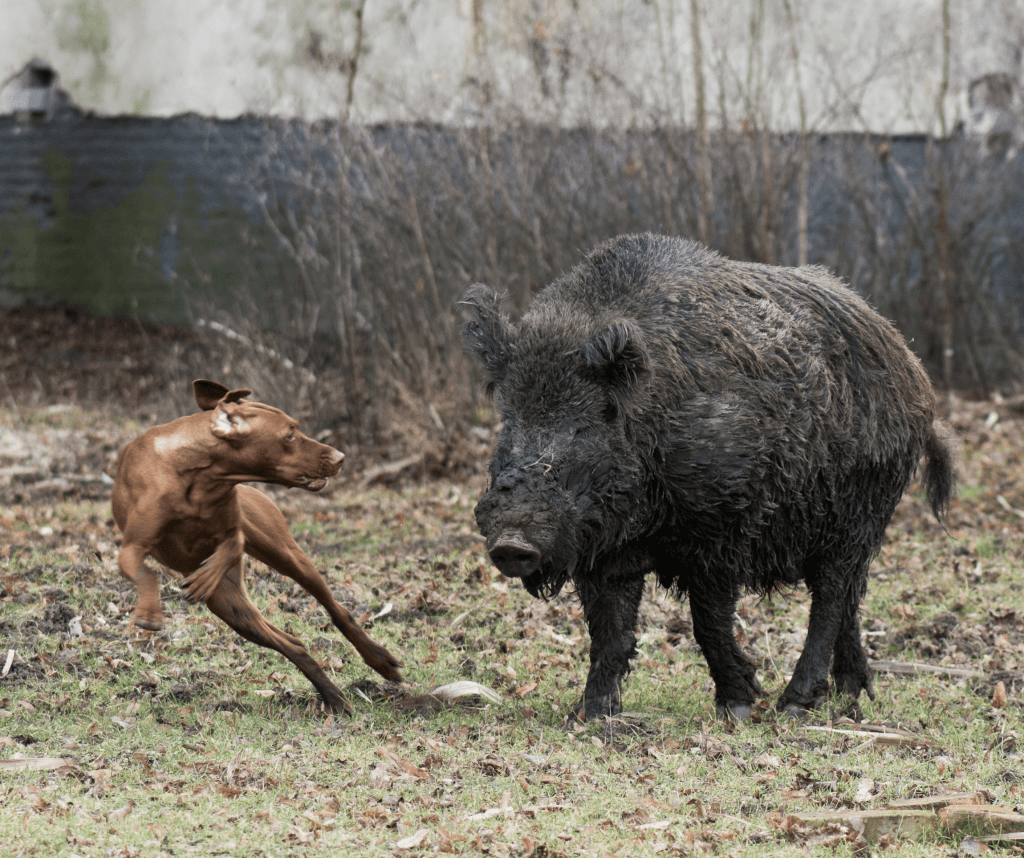 Situatie 3: Mijn hond loopt los in een bos en komt een everzwijn tegen. Wat doe ik als baasje?