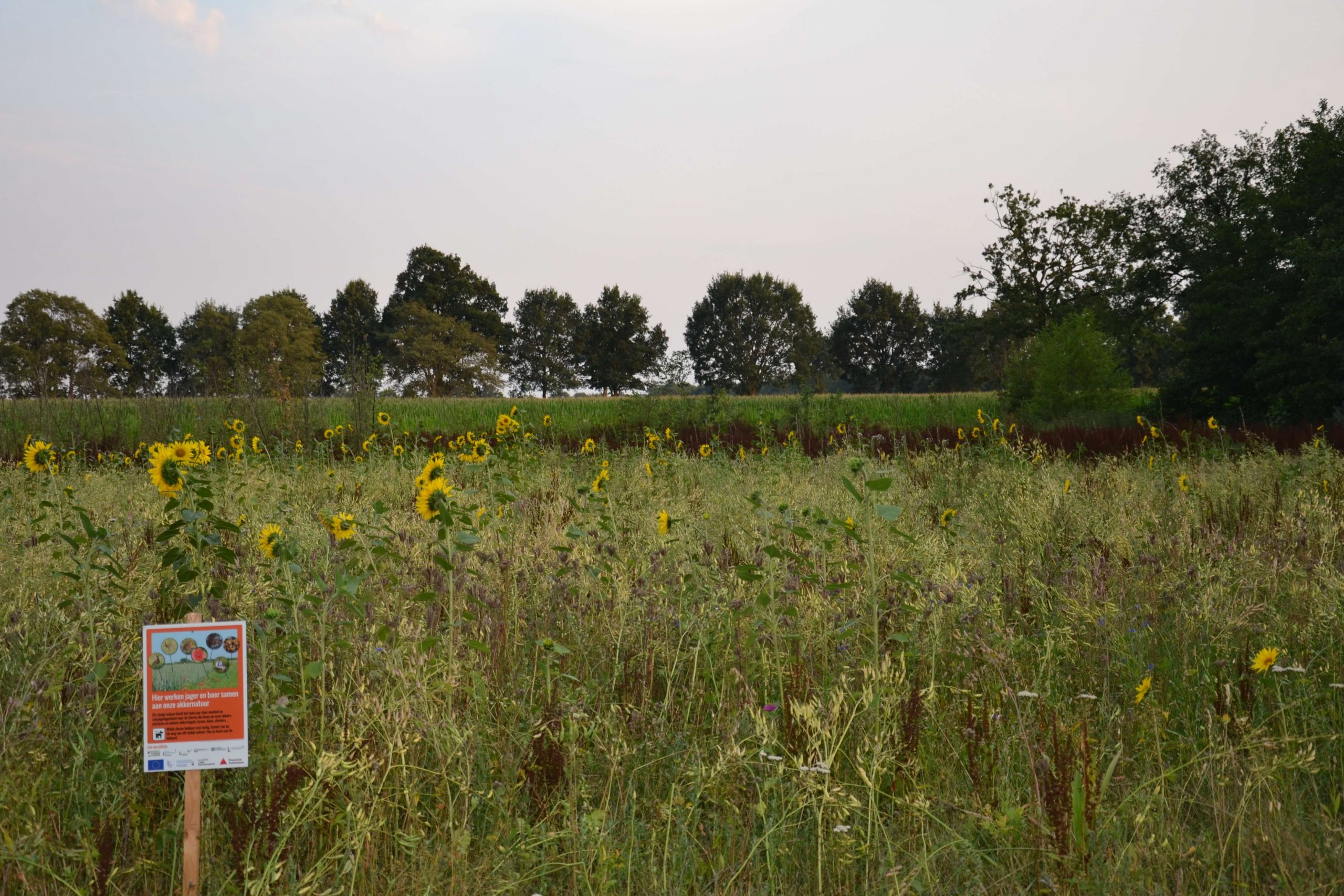 ‘Ik zaaide enkele delen van akkerpercelen in met een speciaal zaad- en kruidenmengsel. En ik kan niet klagen. Het staat momenteel vol met zonnebloemen, die hoog en trots naar de hemel reiken. Ik vroeg zelfs een imker om vier kasten te zetten, omdat het rond de perceeltjes zoemt van de hommels en bijen. Ik kreeg ondertussen al twee potjes met honing als beloning. Mooi meegenomen.’