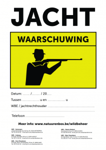 De gele borden zijn de verplicht te plaatsen waarschuwingsborden voor druk- of drijfjachten op grof wild, conform Art. 8 van het Jachtvoorwaardenbesluit van 25 april 2014.