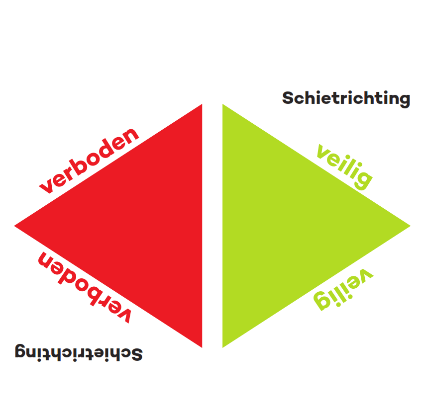 Handig bord dat de veilige schietrichting aangeeft. Kan 180 graden gedraaid worden.