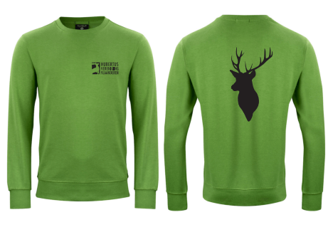 De sweater is voorzien van het unieke HVV-logo met op de achterkant het profiel van een hert.