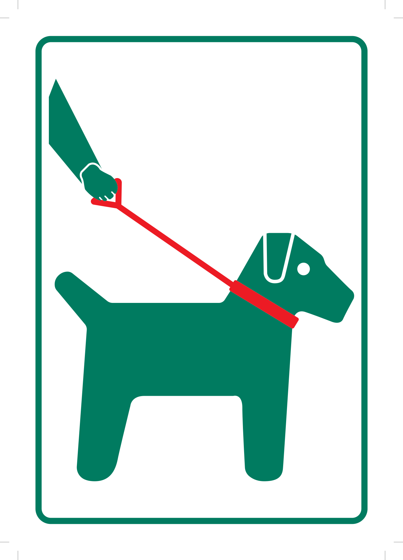 Dit is het enige in de regelgeving voorziene officiële aanwijzingsbord (Categorie 1 – A.14) dat in het kader van een Toegankelijkheidsregeling gebruikt kan worden om aan te geven dat wandelwegen uitsluitend toegankelijk zijn voor voetgangers en voor honden aan de leiband.